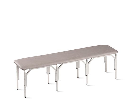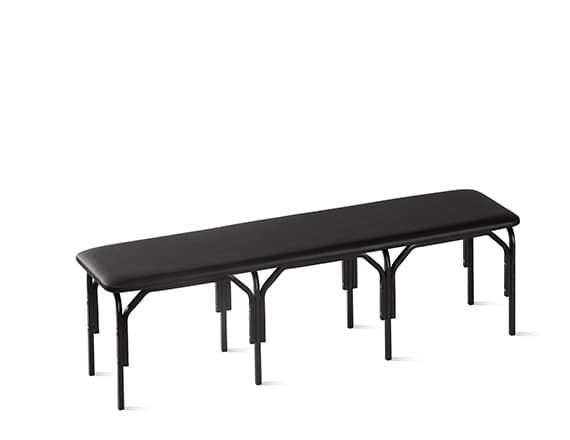 Металлокаркас банкетки изготовлен из стального квадратного профиля 20х20х1,2 мм и состоит из основания и четырех секций ножек, крепящихся между собой с помощью гильз межсекционной стяжки и винтов М6. Металлокаркас окрашен защитным полимерно-порошковым покрытием. Концы ножек закрыты пластиковыми пробками-опорами. Сиденье банкетки изготовлено из ДСП 16 мм, обтянуто поролоном толщиной 20 мм и мебельным кожзаменителем. Нижняя часть сиденья обита нетканым материалом (спанбондом). Крепится к металлокаркасу с помощью саморезов. Допустимая нагрузка 180 кг.