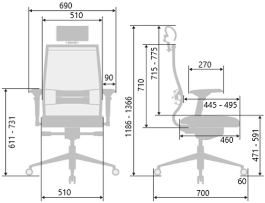 Регулируемая 3D поясничная поддержка (РПП): каркас стальной пластинчатый с полимерным покрытием черного цвета и хромированным молдингом. Подвижная часть РПП стальная хромированная, ремни из искусственной кожи Extra. Регулировка по глубине, высоте и жесткости.