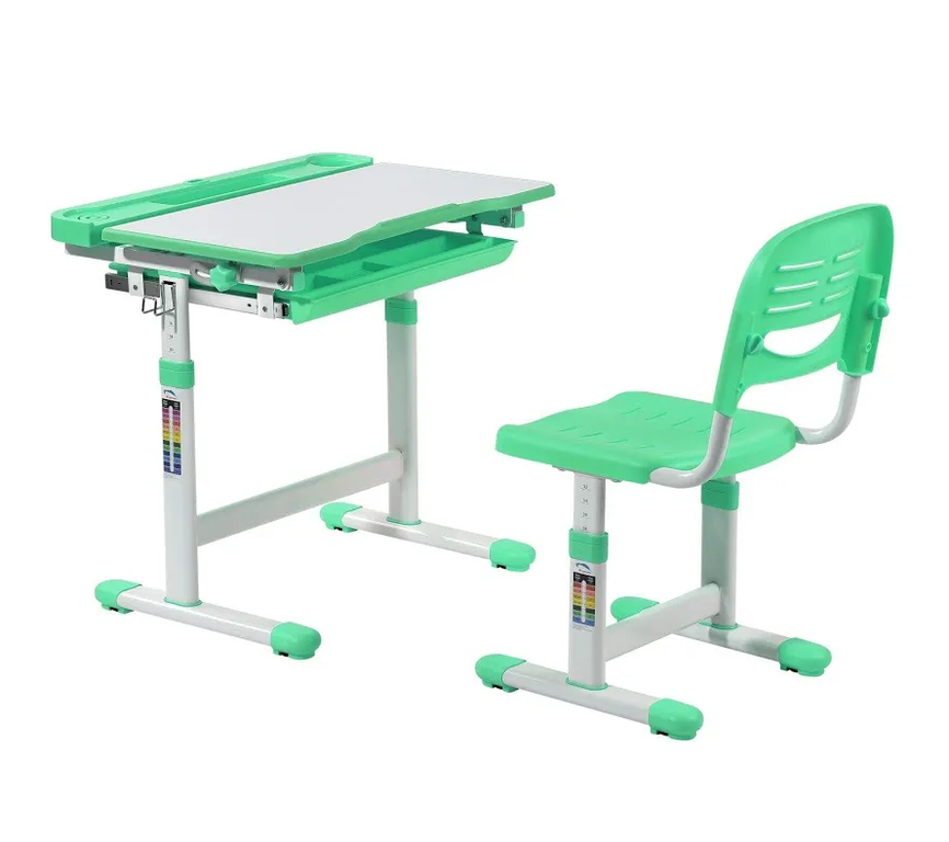 Стол и стул могут быть легко отрегулированы по высоте, что позволяет оптимально адаптировать его под соответствующий рост ребенка.