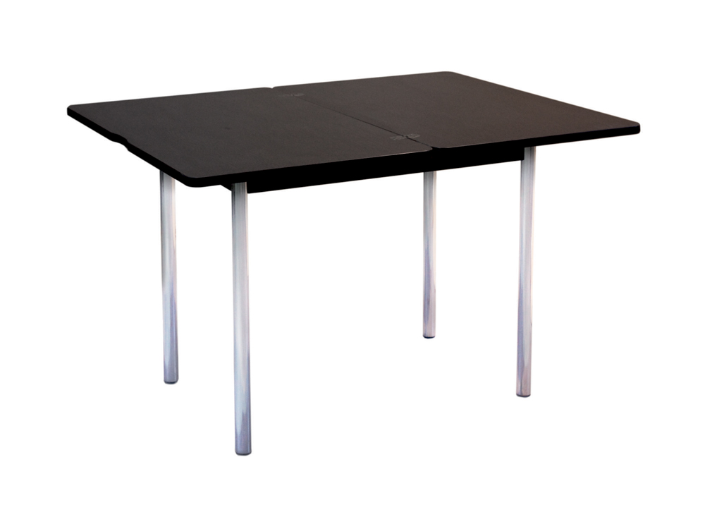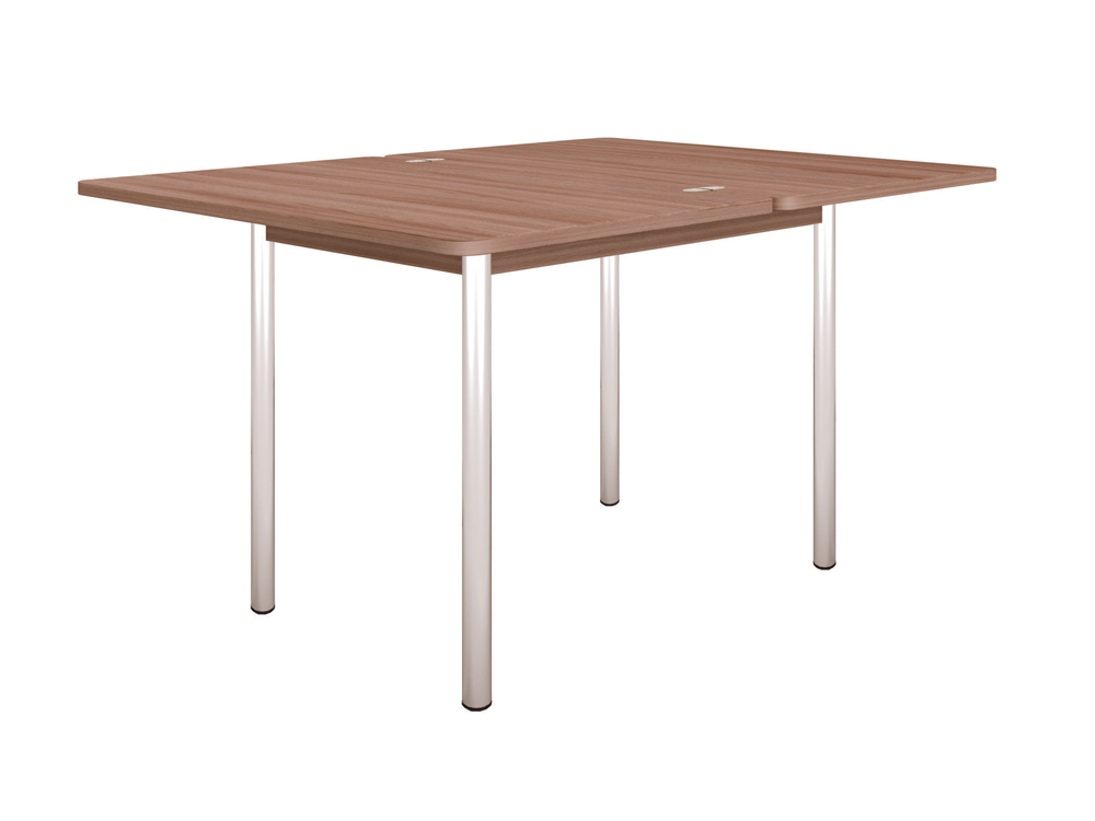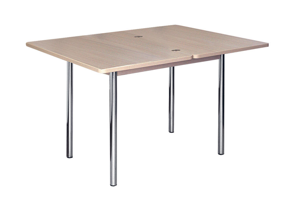«Орфей 1.1» – обеденный стол с возможностью увеличения столешницы в 2 раза. Вместительную нишу для хранения кухонных мелочей оценит любая хозяйка, а металлические стоевые подчеркнут современный стиль обеденного стола.