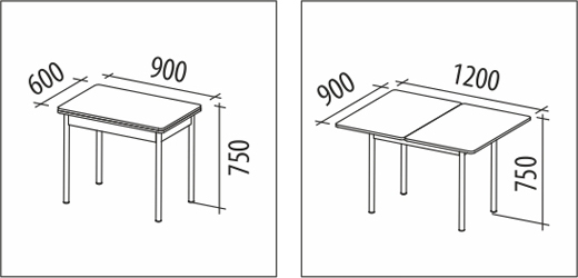 •    900x600x750 мм;